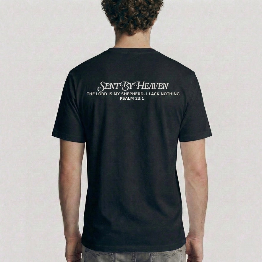 Ein klassisches Bekenntnis zur Fürsorge. Dieses Shirt, das die tröstliche Wahrheit von Psalm 23,11 aufgreift, verkörpert Frieden, Führung und unerschütterliche Geborgenheit, die nur beim Hirten zu finden sind.